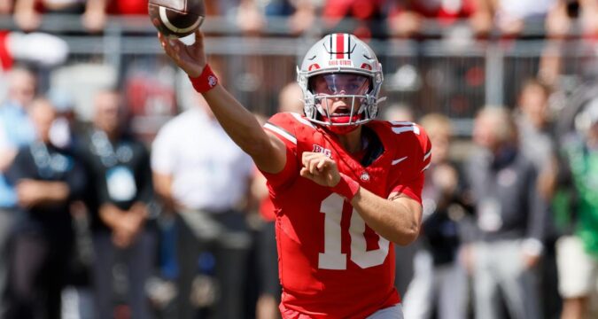 COLUMBUS, Ohio (AP) — Julian Sayin had a 40-yard touchdown pass to Carnell Tate early in the fourth quarter, Ohio State’s defense got a couple key stops in the red zone and the third-ranked Buckeyes opened their season with a 14-7 victory over top-ranked Texas on Saturday.