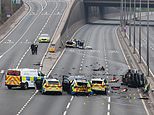 Seven police officers hospitalised after devastating crash as cops ‘chased’ BMW down major dual carriageway before six car pile-up – as man and woman are arrested