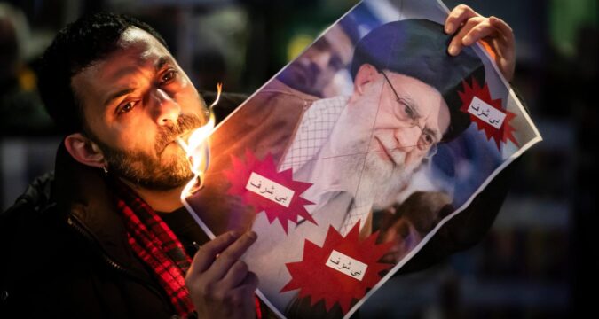 A video that has gone viral in recent days shows the woman — who described herself as an Iranian refugee — snapping open a lighter and setting the flame to a photo she holds. It ignites, illuminating the visage of Ayatollah Ali Khamenei, Iran’s highest cleric. Then the woman dips a cigarette into the glow, takes a quick drag — and lets what remains of the image fall to the pavement.