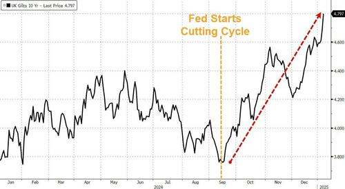 UK Gilt yields topped 4.80% for the first time since 2008 this morning (up 12bps on the day) having blasted higher since The Fed started on its rate-cutting cycle…