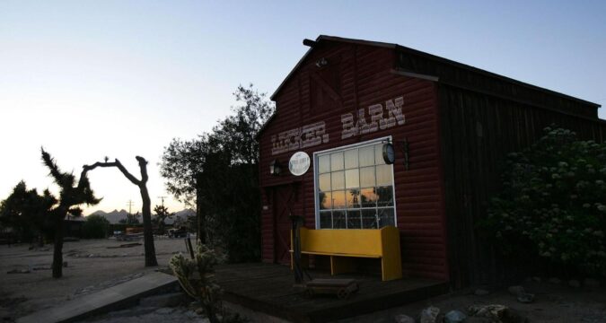 PIONEERTOWN, Calif. — The sun had just begun its descent when the Mane Street Band took the stage for their weekly Honky Tonk Sunday set at Pioneertown’s Red Dog Saloon. Young adults in hiking gear sipped beers beneath chandeliers shaped like wagon wheels as old timers with gray ponytails and cowboy hats chatted with a tattooed bartender. Outside, a group of parents sat around long picnic tables, ignoring their kids who were messing around in the dirt.