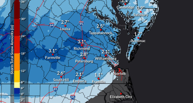 The entire Peninsula, Suffolk and the western portion of Chesapeake in Hampton Roads are expected to receive some snow.