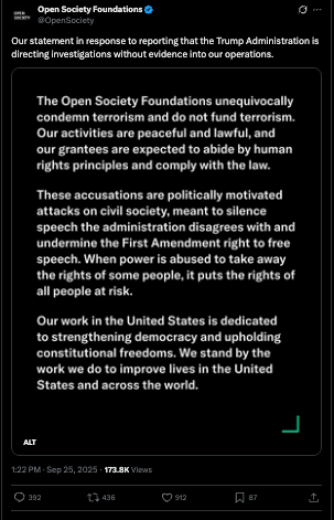 Shortly after the New York Times debuted its piece, “Justice Dept. Official Pushes Prosecutors to Investigate George Soros’s Foundation,” Open Society Foundations (OSF) published a statement on X, and the best their PR team could write in response is this: