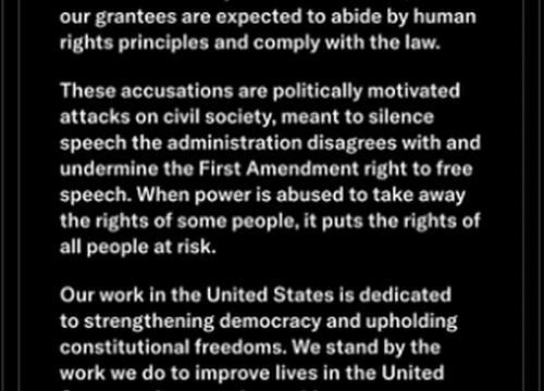 Our work in the United States is dedicated to strengthening democracy and upholding constitutional freedoms. We stand by the work we do to improve lives in the United States and across the world.