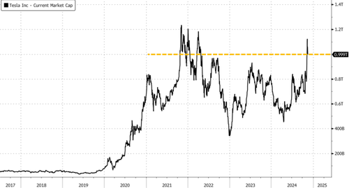 Meanwhile, ‘the Trump bump’ in equity markets sent Tesla shares over the trillion-dollar market cap level this past week.