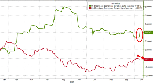 Hotter than expected CPI (as food costs reignite) and ugly jobless claims data (somewhat affected by Hurricane Helene) signal stagflationary pressures may be returning…