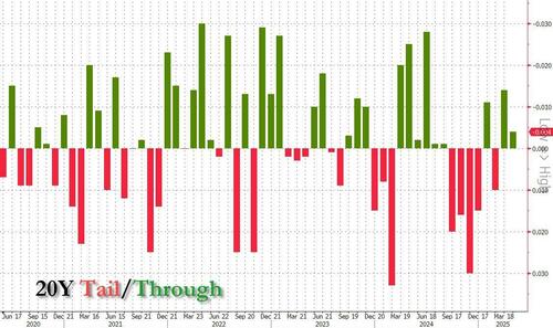 After last week’s basis trade collapse (which we now know has already claimed several relative value multistrat hedge funds), many were dreading the outcome of today’s 20Y auction, a reopening of 19-Year, 10-Month cusip UJ5. It turned out they have nothing to fear.