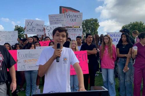 Lesley Ledesma, a junior student who led the walkout, said a transgender-identifying male has been using the girls’ restrooms. And, when she complained to the school administrators, she was told that if she felt uncomfortable sharing the bathroom with him, she could use the one in the nurse’s office instead.