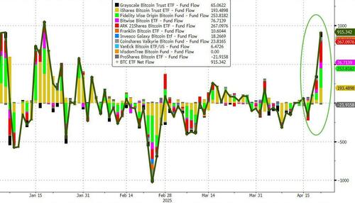 US spot Bitcoin ETFs had over $912 million worth of cumulative net inflows on April 22, marking their highest daily investment in more than three months since Jan. 21…
