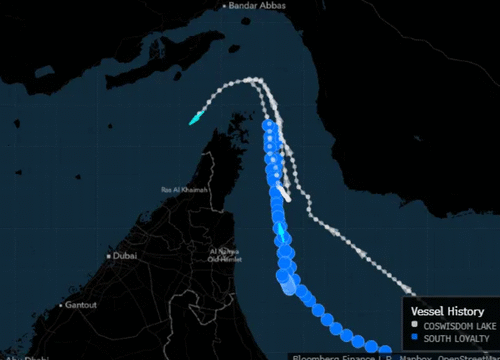 The Coswisdom Lake and South Loyalty both entered the waterway and abruptly changed course on Sunday, according to vessel tracking data compiled by Bloomberg. The first of the two carriers then did a second U-turn and is now going back through Hormuz. The other one remains outside of the Persian Gulf, according to its signals on Monday. –Bloomberg
