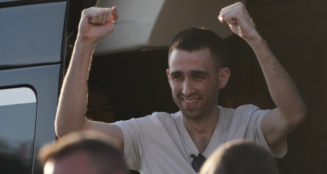 On day 738 since Alon Ohel was taken hostage, family and friends of the young music lover jumped to their feet, cheered, blew into shofars — traditional horns that announce glad tidings — and hugged each other when they saw his picture on a livestream among the seven hostages Hamas first released to the Red Cross on Monday morning.