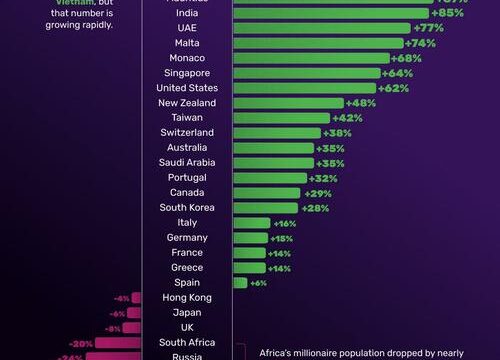 Vietnam’s millionaire population, in particular, has surged by 98% over the last decade, reflecting the country’s rapid economic development. Meanwhile, China and India have created hundreds of thousands of new millionaires, solidifying their positions as major players in the global wealth landscape.