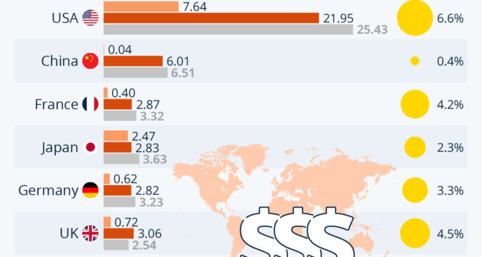 The United States is home to by far the largest contingent of dollar millionaires: 22 million in 2023, representing 6.6 percent of the country’s population.