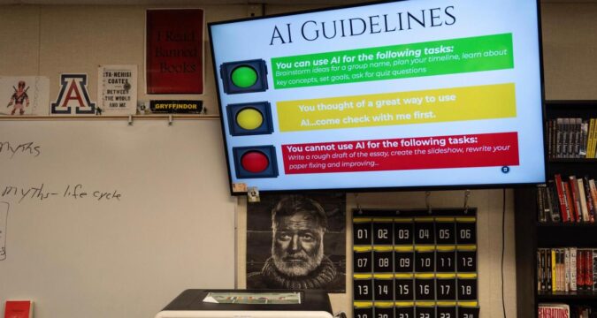 Cuny’s students at Valencia High School in southern California now do most writing in class. He monitors student laptop screens from his desktop, using software that lets him “lock down” their screens or block access to certain sites. He’s also integrating AI into his lessons and teaching students how to use AI as a study aid “to get kids learning with AI instead of cheating with AI.”