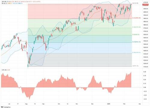 On Thursday, the market broke out of the bullish consolidation over the last few weeks, successfully retesting and holding support at the 50-DMA. Notably, the bullish trend remains intact, and retail investors continue to pour money into the market, with money flows reaching typical peak levels. With the market elevated, downside risk over the next few weeks will likely be contained to recent January lows. What would cause such a correction is unknown, but if money flows begin to reverse, such will likely provide the evidence needed to rebalance risks accordingly.