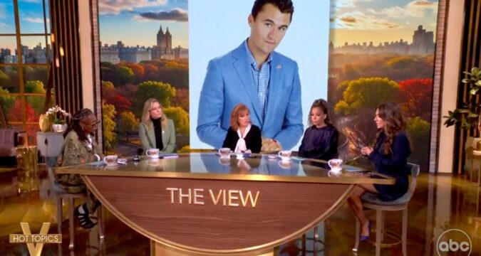 “The View” had a very different conversation about Kirk and the Turning Point USA organization he co-founded when the ladies were compelled to apologize for claiming that a neo-Nazi group that had gathered outside one of their Florida events was part of the festivities.