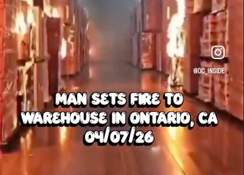 Dramatic footage appears to show an act of industrial sabotage at a one-million-square-foot Kimberly-Clark distribution center in Ontario, California.