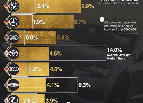 In this graphic, Visual Capitalist’s Marcu Lu ranks the favorite car brands of the ultra-rich, based on each brand’s percentage share of new registrations in the United States.