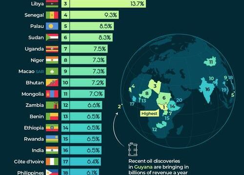 Using the latest IMF projections, this infographic, via Visual Capitalist’s Marcus Lu, ranks the fastest growing economies in 2025, highlighting Africa and Asia as the top regions.