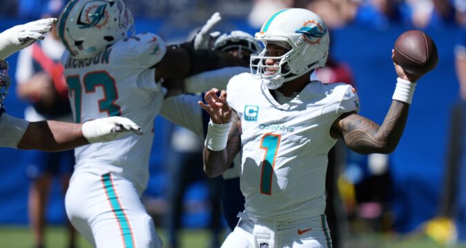 Tagovailoa’s on-field connection with wide receiver Tyreek Hill (four receptions, 40 yards vs. Colts) wasn’t good last season, and it was worse in the opener. In their past three games the Tagovailoa-to-Hill connection has totaled nine receptions for 105 yards on 20 targets.