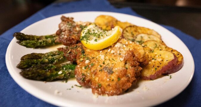 This crispy Italian-American chicken dish can be prepared in about a half-hour and is often served over pasta with a light lemon-butter sauce. Adam Sweetland, the new director of dining at Juniper Village at Forest Hills, learned to make it for his mother, Sandra. “It was one of her favorites,” he says.