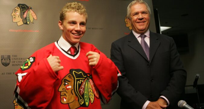 2007: Chicago Blackhawks winger Patrick Kane — top pick in the NHL draft — scored his first career goal in a 5-3 victory against the Colorado Avalanche at the United Center.