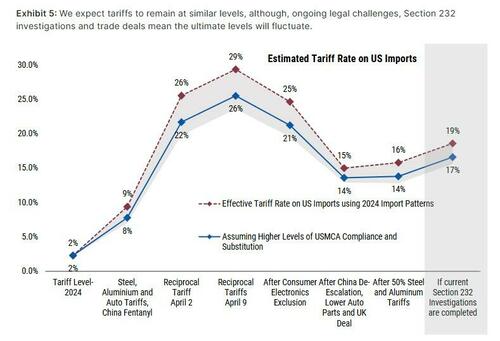 As a benchmark, DB’s economists believe the current effective tariff rate is around 15% (same as Morgan Stanley, see chart below), which is obviously a good deal below the implied rate from Liberation Day, but well above the low single figures before Trump returned to office. It is good news for markets that Section 899 (the revenge tax) has been consigned to the history books after not making it into the tax bill. It’s also good news that Bessent has recently sounded more positive on the direction of travel in recent talks.