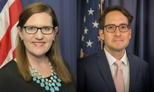 Rebecca Kelly Slaughter and Alvaro Bedoya. Composite: Government