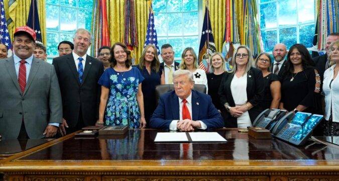 Also on hand for Monday’s proclamation signing were Defense Secretary Pete Hegseth and Vice President JD Vance, who told victims’ relatives that Trump’s action was “a rectification of a wrong” because Biden “lost your loved ones through incompetence” and his government “never actually put pen to paper to say we’re grateful for your sacrifice.”