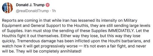 Trump has spelled out the “or else” part in a Yemen-related Wednesday post on Truth Social…