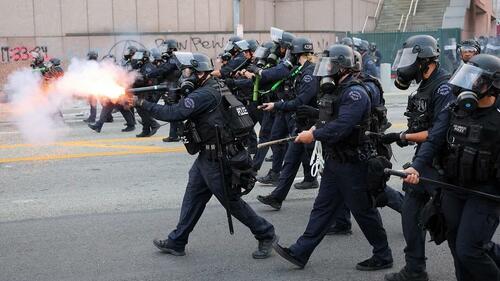 Flash bangs and tear gas is deployed against them.