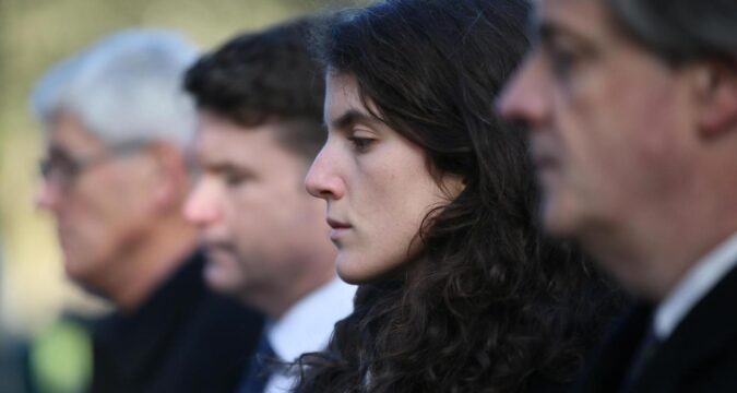 Tatiana Schlossberg, the daughter of Caroline Kennedy and Edwin Schlossberg, addresses an audience during the John F. Kennedy Profile in Courage Award ceremony, at the John F. Kennedy Presidential Library and Museum in Boston, Oct. 29, 2023. (AP Photo/Steven Senne, File)