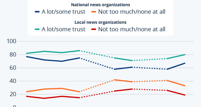 And yet, against this dismal backdrop, Statista’s Anna Fleck reports that a new survey by Pew Research Center conducted between March 10 and 16, 2025 indicates that there has been a shift, with U.S. adults now more likely to say they trust information from news organizations than they were last year…