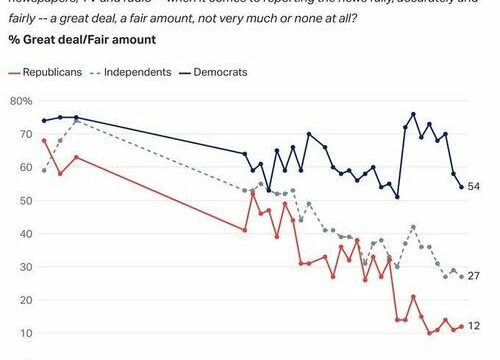 The anonymous TV exec’s comment to Stelter nailed it. Trust in corporate media has been sliding for decades but has imploded to record-low levels in the last several years.