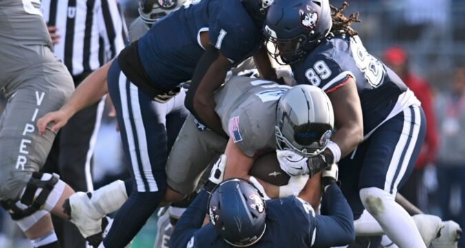 UConn had been struggling against the run all season, so it’s possible the four-up-front alignment will stay. It hurt the Falcons that quarterback Liam Szarka, a big part of the running attack, was injured in the second quarter.