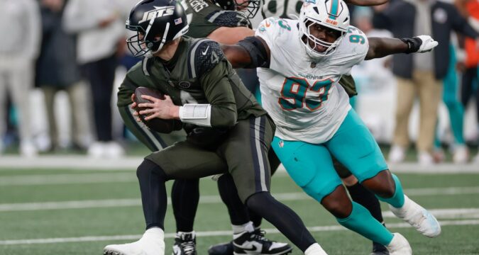 The Jets defense, which improved recently, looked like the unit they were earlier this season under defensive coordinator Steve Wilks. Players missed several tackles on Dolphins running back De’Von Achane and the secondary was often out of position on passing downs. Achane rushed for 92 yards and a touchdown in the first half before leaving the game after suffering a rib injury.