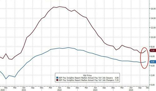 While Friday’s jobs report will have more to say about this, today’s ADP report which indicated a sharp bounce in wage growth suggests that the Fed is now working on stale wage data.