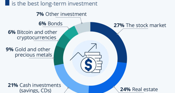 As Statista’s Anna Fleck details below, the next most popular investment choices were real estate and cash investments, at 24 percent and 21 percent, respectively.