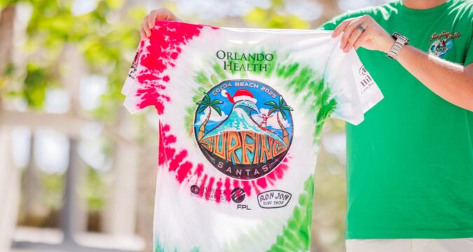 Surfing Santas returns to the Space Coast on Dec. 24, but fans of the annual event can also purchase merchandise including a tie dye T-shirt. (Fish Studio Photography/Courtesy Surfing Santas)