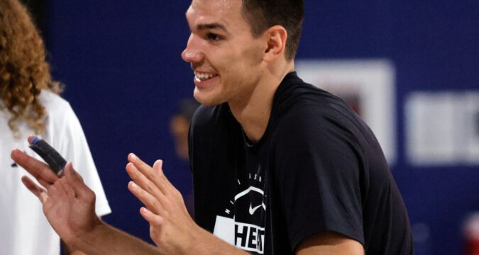 “We’ll just have to see how he progresses,” Spoelstra said. “He’s delightful. He comes in every day, he works hard as heck. He hits the crap out of our bigs and then smiles with them afterward.”
