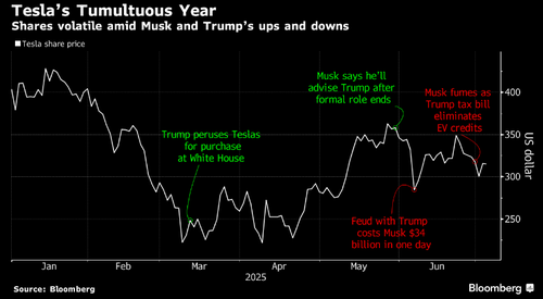 Musk said on Saturday that a new “America Party” he’d been threatening to launch was formed, a day after Trump signed a tax-cut and spending bill into law that Musk had denounced. He didn’t provide details of the political party and there’s no immediate indication that he has filed official paperwork. Tesla’s stock, which has lost more than 20% this year, is poised to fall further: The company’s shares slumped as much as 7.6% in premarket trading on Monday.