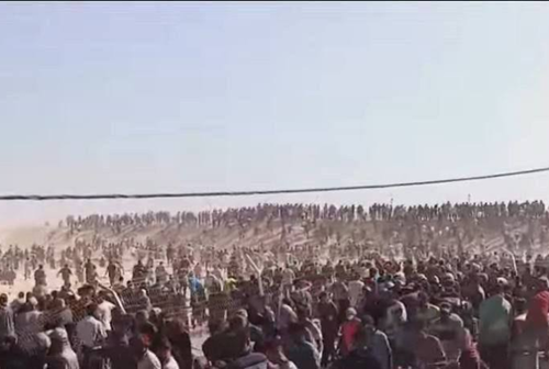Screenshot of video showing starving Palestinian crowds overrunning an aid distribution checkpoint.