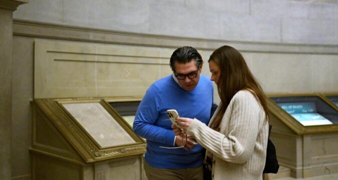 Ryan O’Neil, visiting from West Bloomfield, Michigan, said that while the country is split politically — what he called “very tribal” — he finds hope in the documents he viewed at the National Archives because they have guided the country for 250 years.