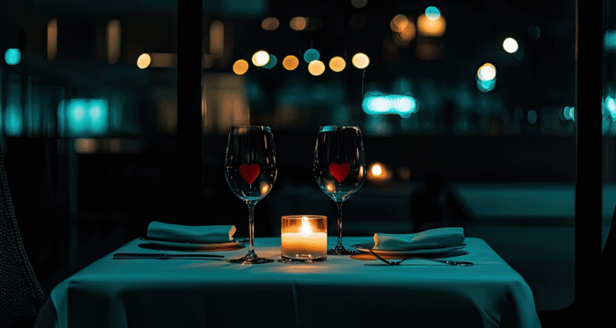 A cozy booth. Linen tablecloths. Candlelight. Soft music. All the basic elements needed for a romantic date-night dinner, right?