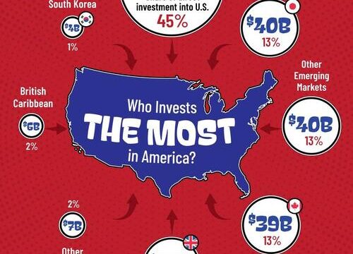 This graphic, via Visual Capitalist’s Kayla Zhu, visualizes foreign direct investment (FDI) into the U.S. by country or region of origin in 2023.