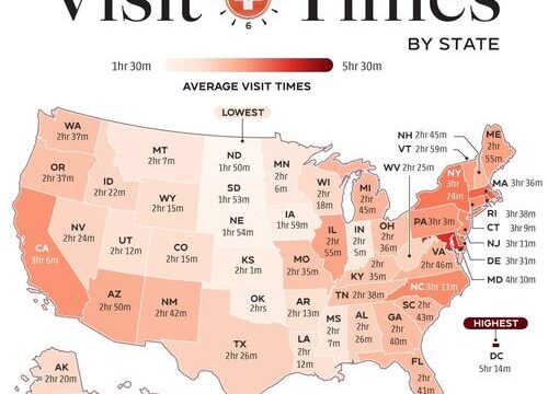 This map, via Visual Capitalist’s Kayla Zhu, visualizes the average time patients spend in the emergency department before leaving, by U.S. state and territory.