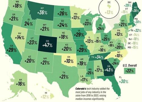 Colorado’s thriving tech industry helped push median income up 46.9%, the fastest rise across states.