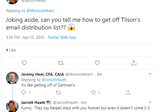 Last time we checked in on Tilson people on social media were scrambling to try and figure out ways to get off his mailing list…