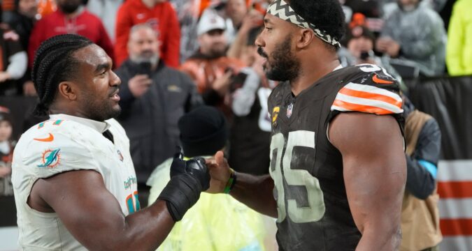 One of those picks was on the final play in a last-ditch effort to run a play involving laterals with five seconds left. The first one got to Jaylen Waddle before he bobbled it and volleyed it to a Chargers defender. Waddle’s numbers are fine since Tyreek Hill went down for the Dolphins, but he can’t have miscues like that in being a true No. 1 wide receiver. Tagovailoa also needs to get back to targeting Waller against a Browns secondary that has four-time Pro Bowl cornerback Denzel Ward, just traded with the Jaguars for Tyson Campbell and has Grant Delpit at safety.