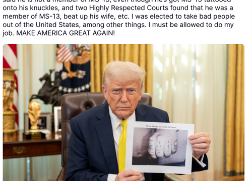 Jennings concluded: “The American people elected Trump to deport illegal aliens. They especially elected him to deport people who are affiliated with very violent, transnational gangs that we now characterize as terrorist organizations. The American people are behind the president. And Democrats like Van Hollen look ridiculous, standing up him [MS-13 gangbanger] more than he stands up for the people of the United States of America.”